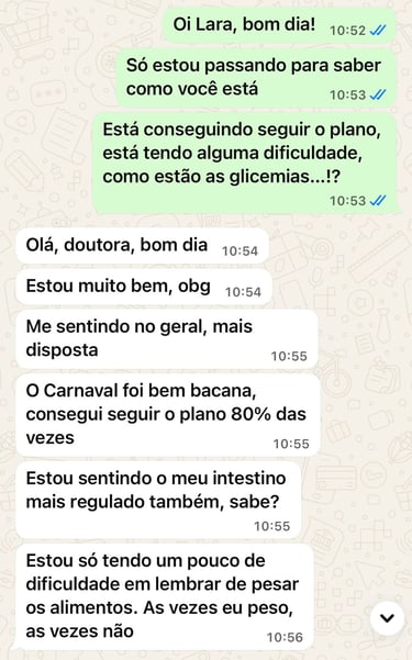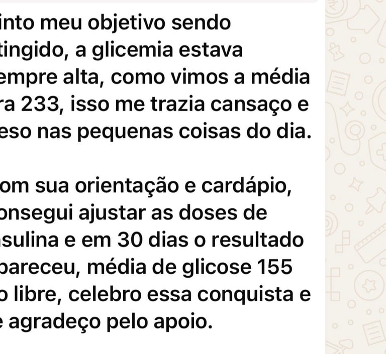 Sou nutricionista formada, com pós-graduação em recomposição corporal, emagrecimento e ganho de massa muscular, e atuo de forma especializada no cuidado nutricional de pessoas com pré-diabetes, diabetes tipo 1, diabetes tipo LADA e diabetes tipo 2.
